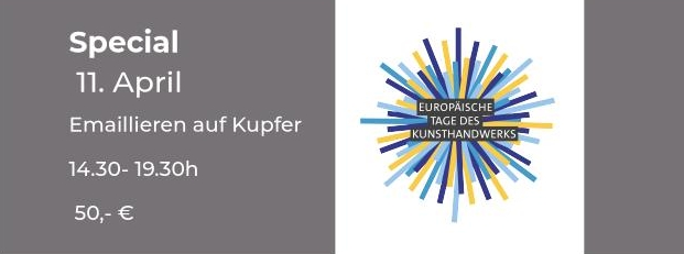 Am 11. April kann man praktisch die Werktechnik Emaiilieren kennen lernen, von 14.30-19.30h gibt es dazu einen workshop.